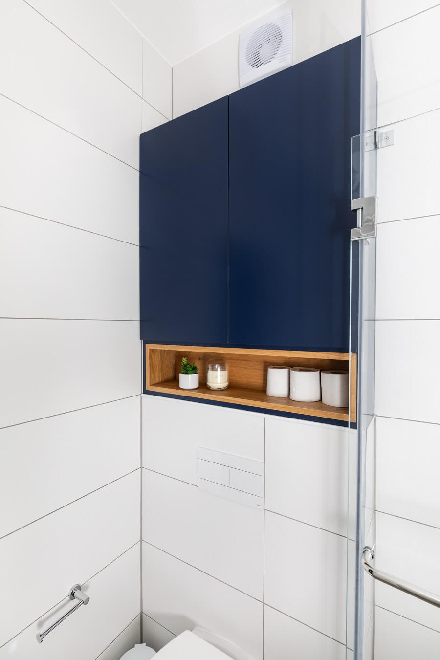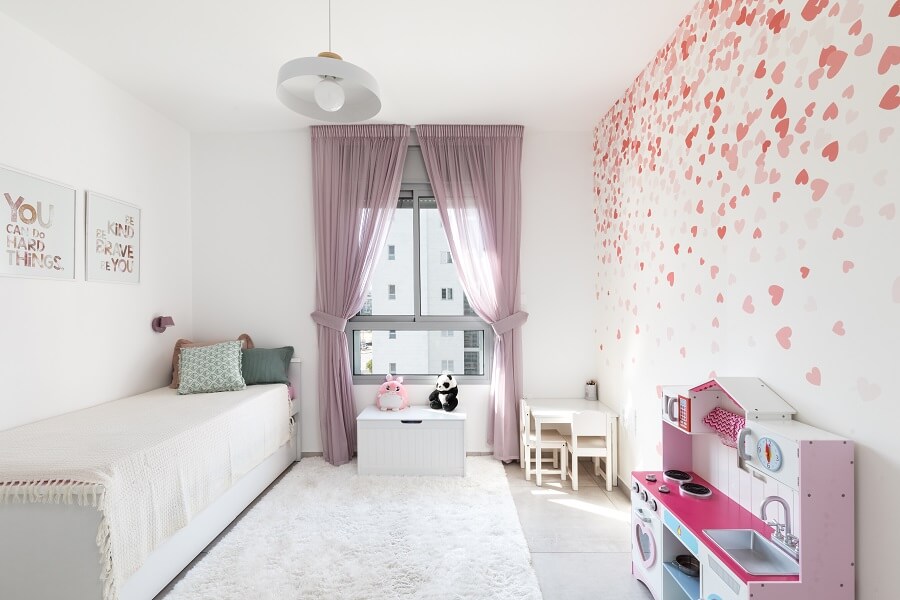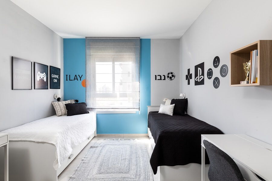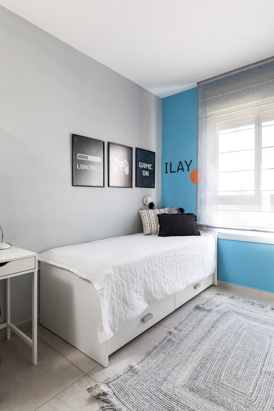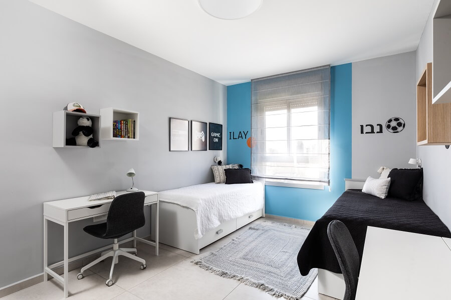 הדירה כללה חדר אמבטיה לילדים שאף הוא תוכנן מחדש. הקיר המפריד בין האמבטיה לחדר השירות הוסר, במקום אמבטיה תוכנן מקלחון, הוחלפו המיקומים בים המקלחת לארון האמבטיה כך שיוכל להכיל צרכי שלושת הילדים המשתמשים בו.