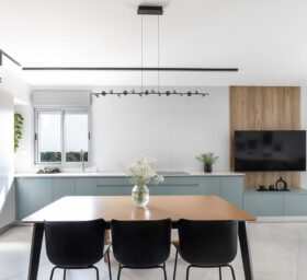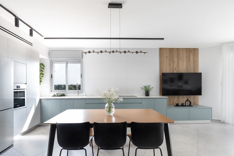 החלל המרכזי נראה בסופו של דבר גדול ומרווח יותר בזכות תכנון העמדה נכונה.