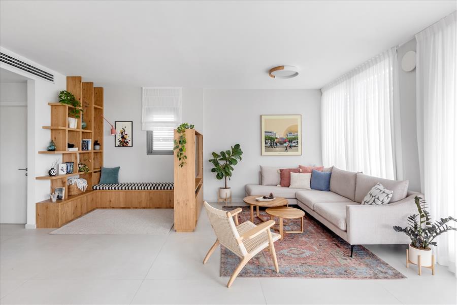 הויז'ן – בית נוח וחמים המותאם למשפחה צעירה עם נגיעות של צבע, הרבה אור ופינות נעימות למשחק וקריאת ספרים.