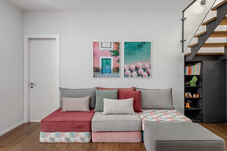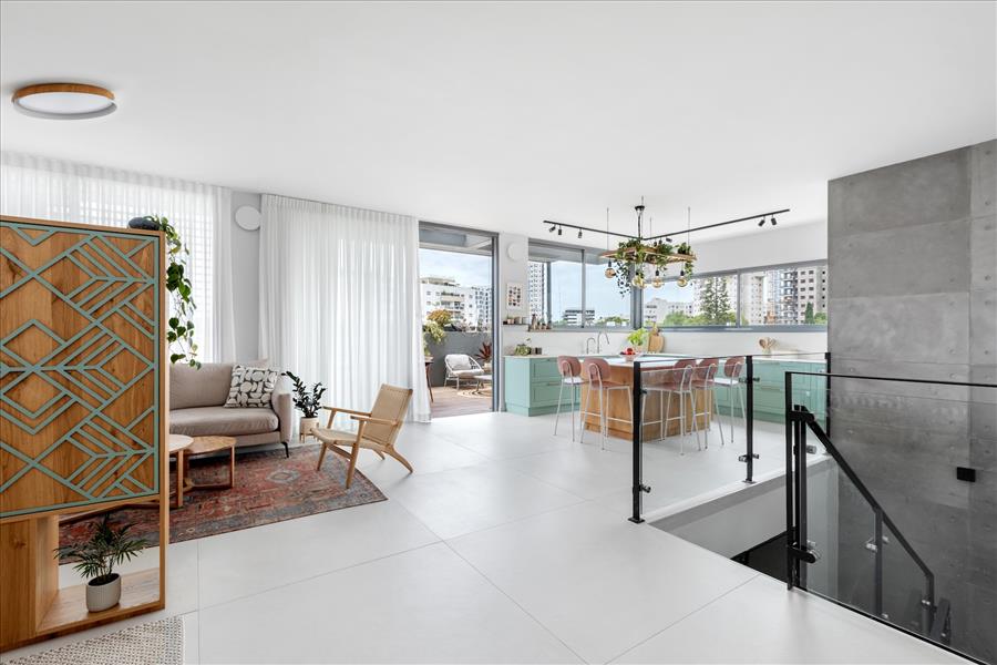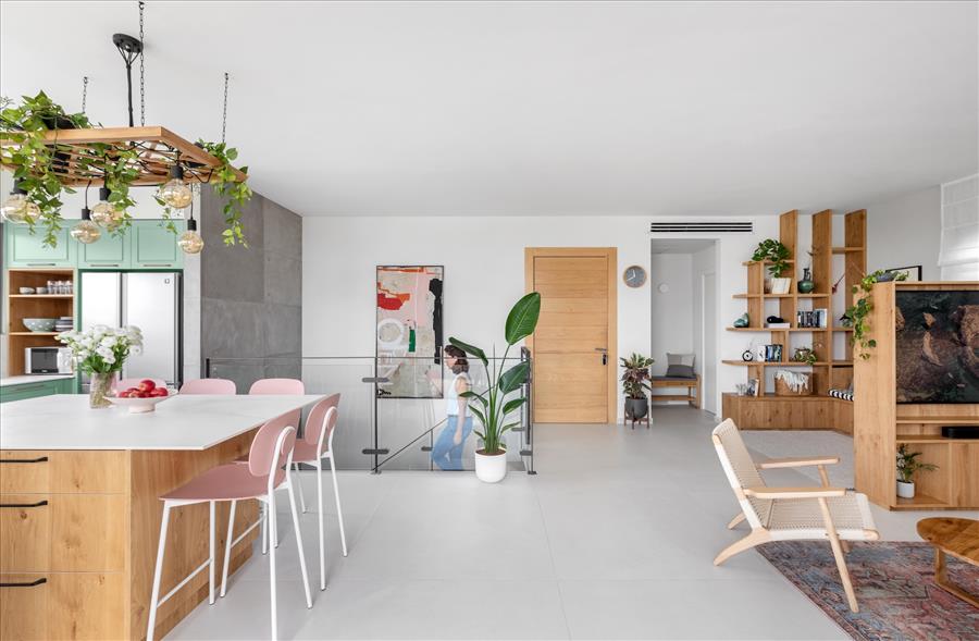 קומת המגורים התחתונה עברה הלבשה מלאה עם צבעוניות חדשה, רהיטים, תאורה, אומנות ועוד.