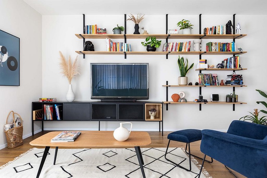 כבר בפגישה הראשונה דיברנו על הספרייה שתהווה את מרכז הכח בסלון.