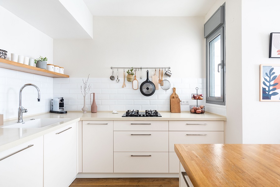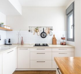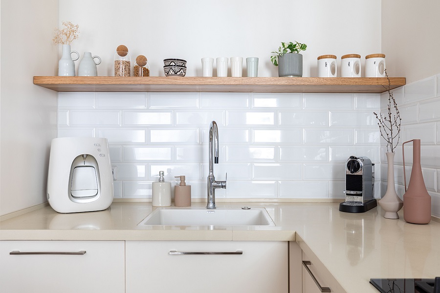 המטבח שודרג אף הוא ע"י התאמות סטיילינג של תאורה, כסאות בר חדשים, מידוף ואקססוריז.