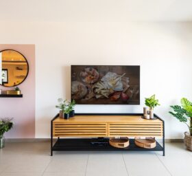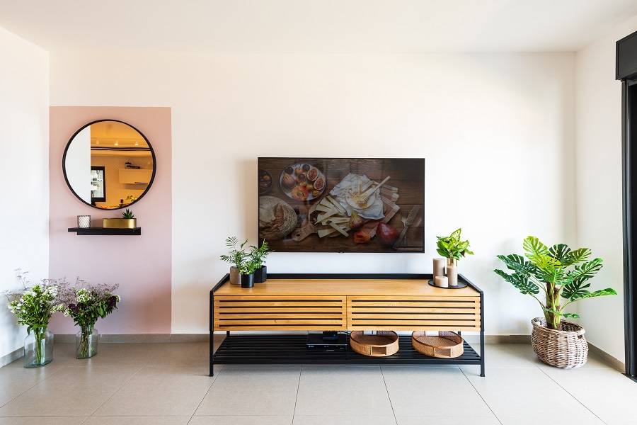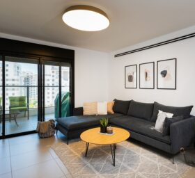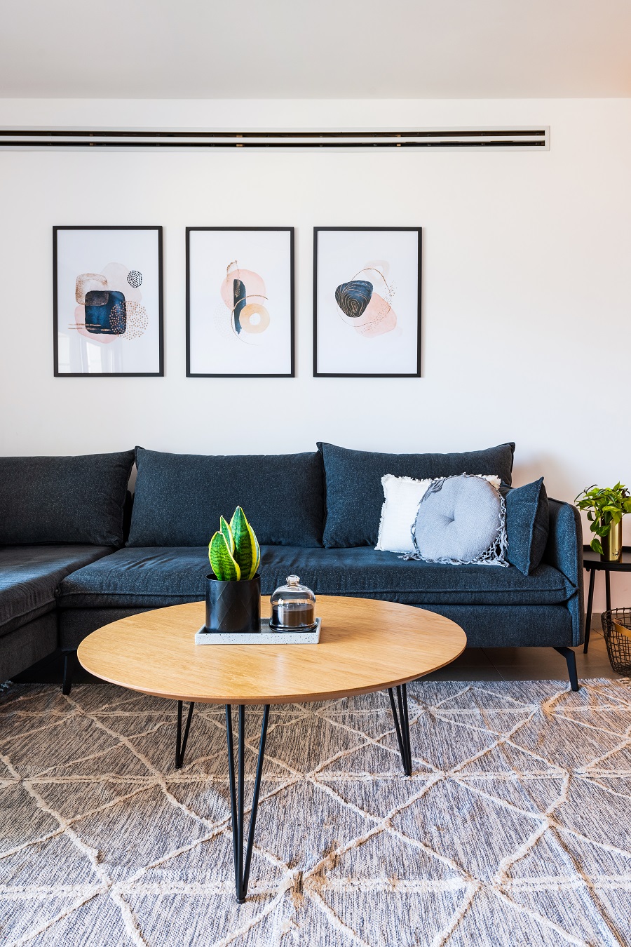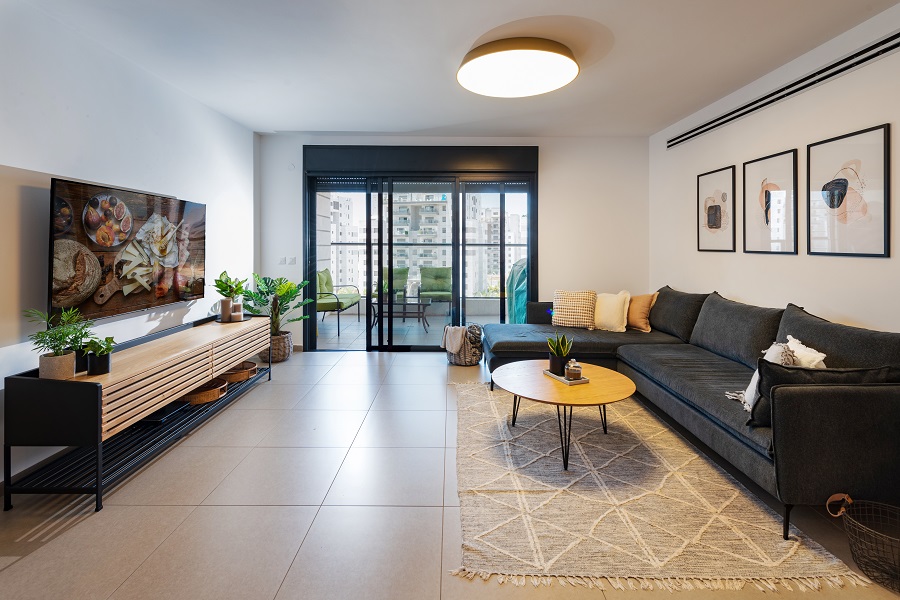 הדירה עוצבה והולבשה בסגנון מודרני עם אלמנטים שמכניסים חמימות וטקסטורה.
