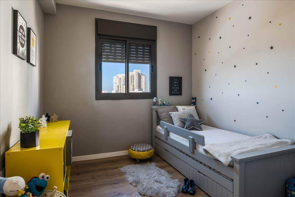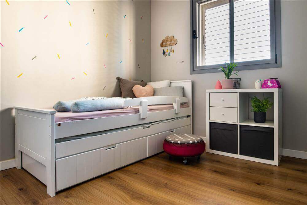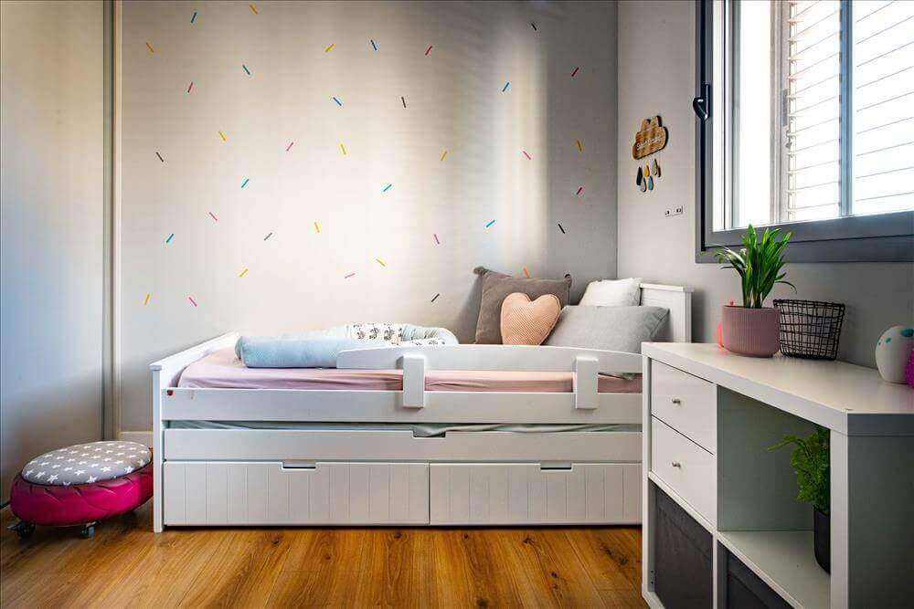 חדרי הילדים גם קיבלו התייחסות עיצובית, ללא הזזת הפונקציות, רק באמצעות שימוש בהום סטיילינג- בחירת צבעים, טפטים, רהיטים ופרקט עץ שמכניס המון חום.