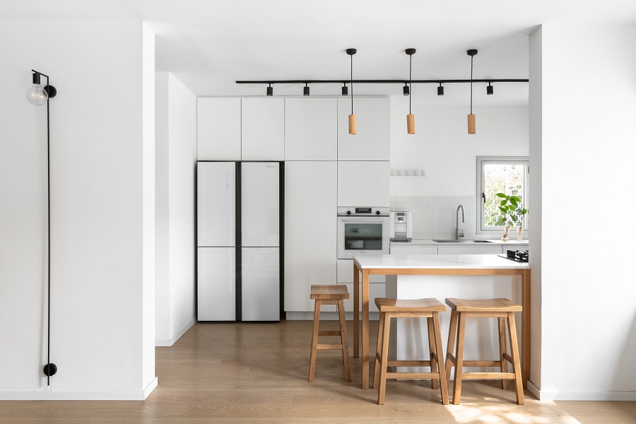החדר הסמוך לסלון נפתח והפך למטבח..
