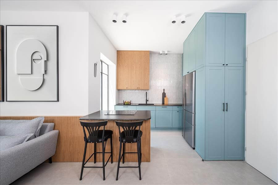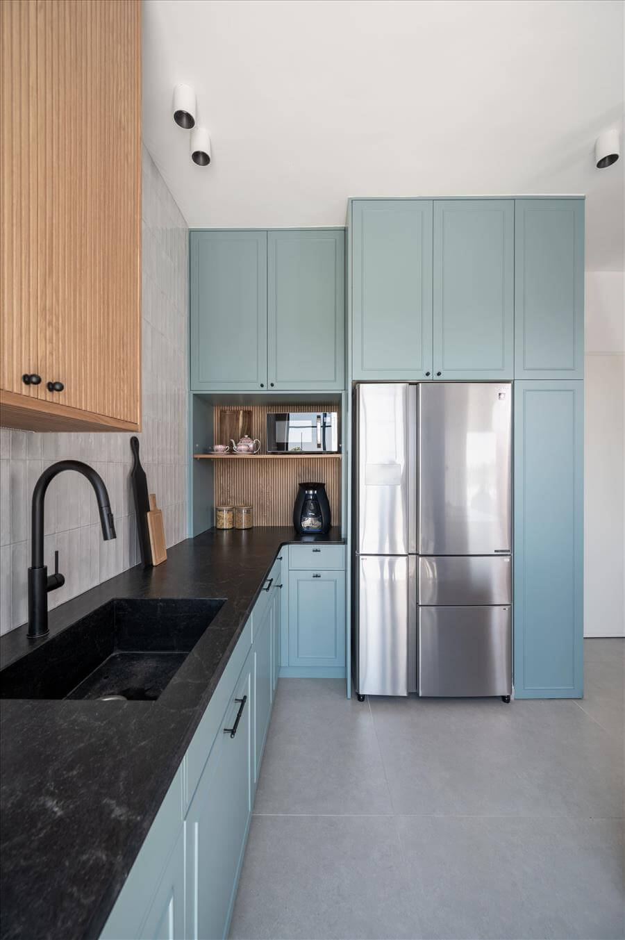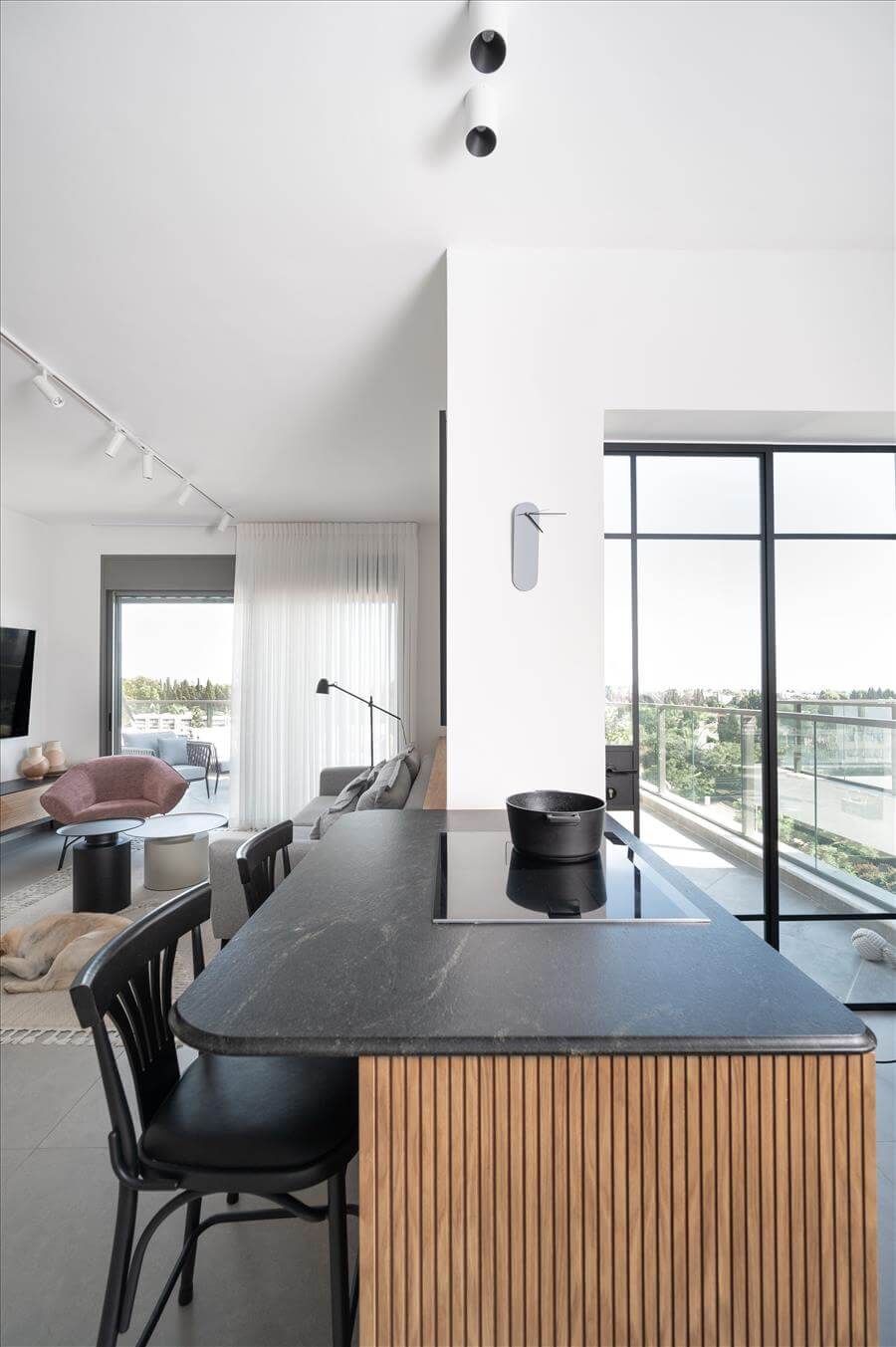 התאמתי ותכננתי מחדש את המטבח כך שיענה על צרכי הלקוחות וגם יהיה המוקד העיצובי של הדירה.