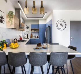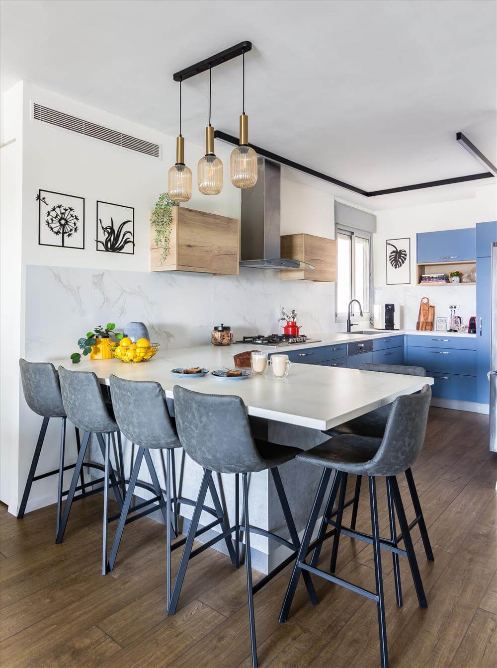 זוג עם שלוש בנות, שני כלבים וחתול. נכנסו אל הדירה ממש בשיא הקורונה, ולא ממש הספיקו לשפץ. את מה שעיצבו – עשו תוך כדי הסגר, בעצמם. לאחר שנה בבית – פנו אלי, כדי שנשנה את מה שהם למדו להכיר והבינו שפחות אוהבים – והדחוף מכל – המטבח!