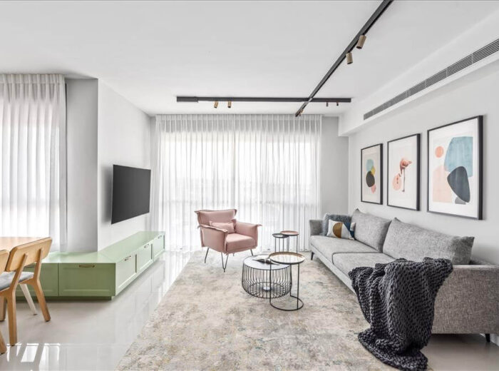 בני זוג בשנות ה-30 לחייהם מהעיר רחובות, רכשו דירת קבלן שהייתה מושכרת למשך שנה לאחר תום הבניה. לעיצוב הדירה הם פנו אלי.