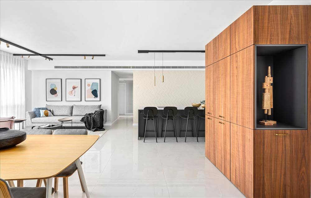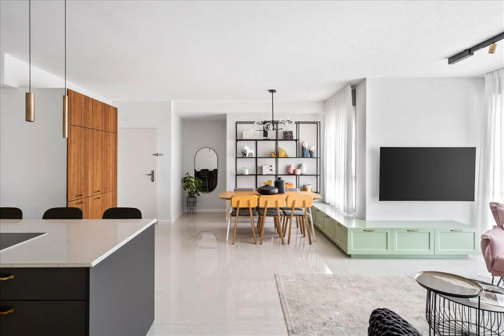 בעלת הבית ביקשה בית מעניין וייחודי, שישאיר רושם על המבקרים ויחד עם זאת יהיה נעים לעין, הרמוני, והכי חשוב למישהי שהיא חולת ניקיון – שיהיה פרקטי 🙂