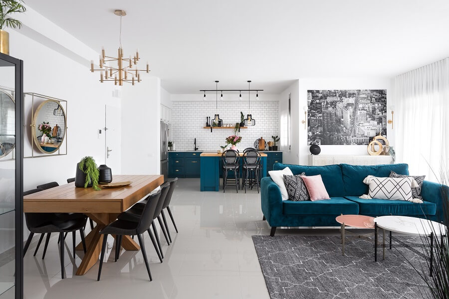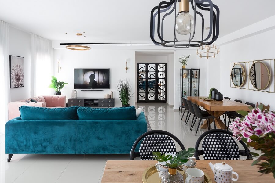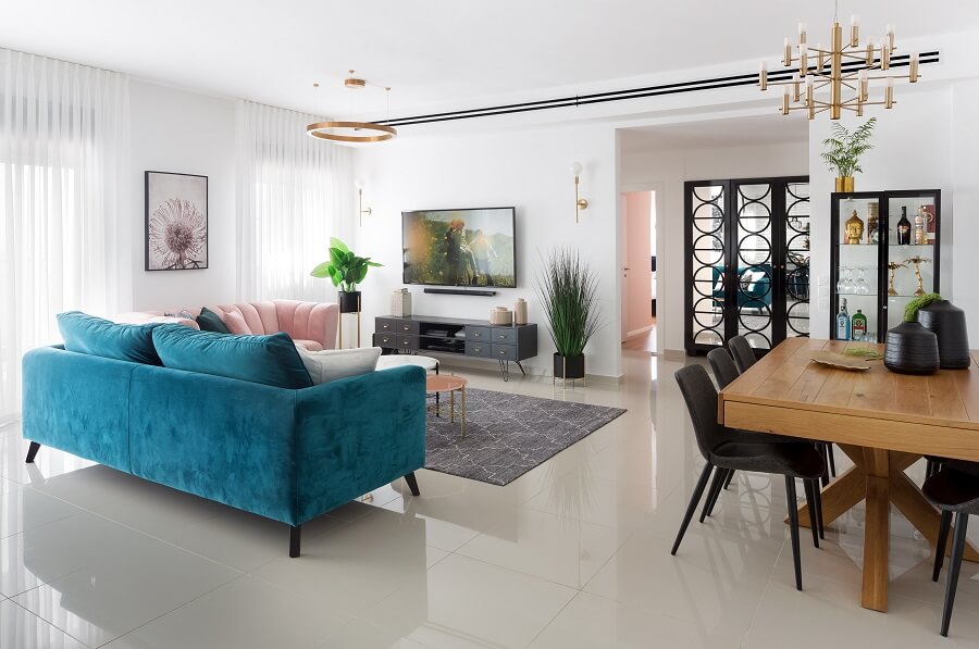 בני הבית אוהבים לארח וביקשו ליצור תחושה של בית רחב ידיים ומפנק.