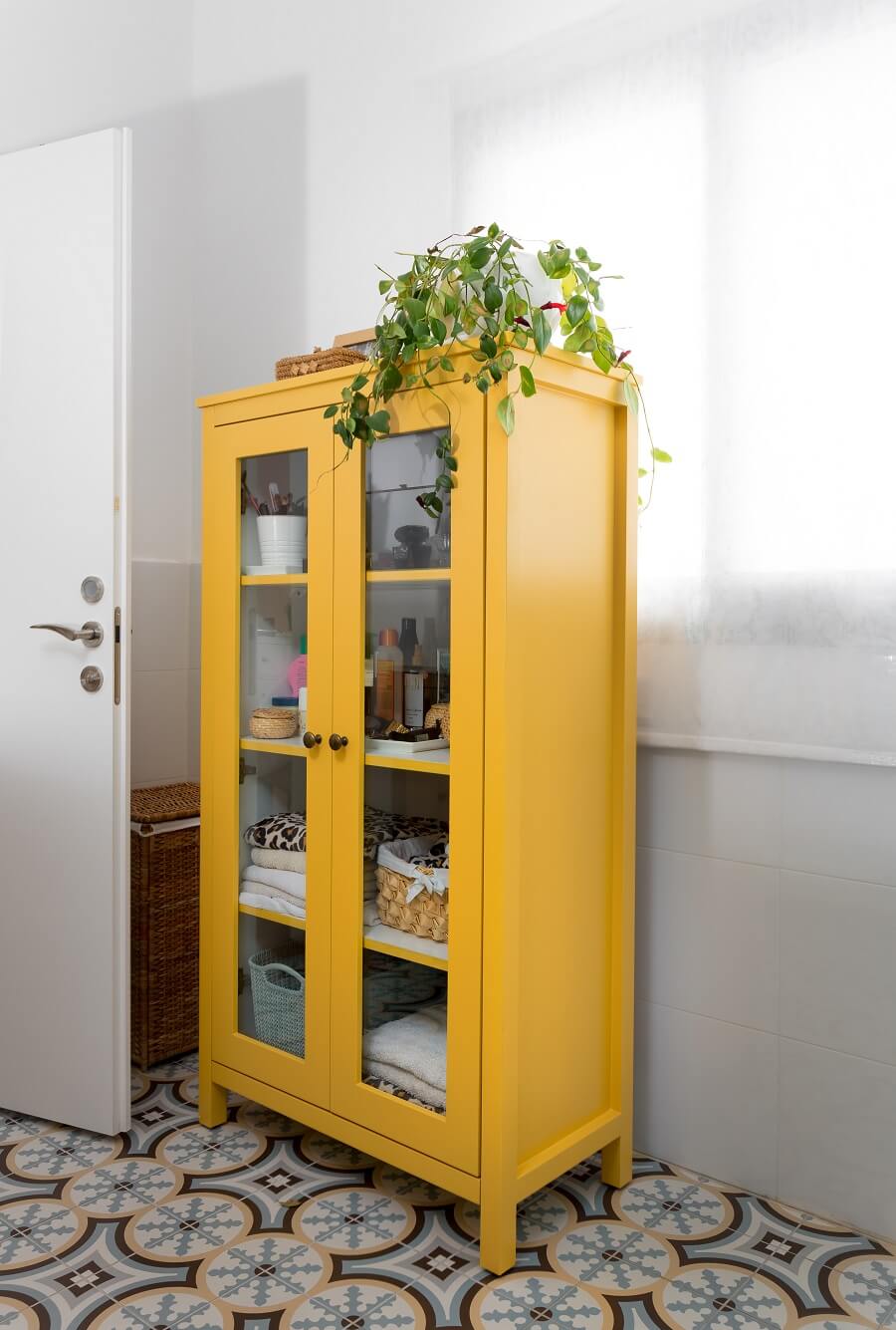 בחדר הרחצה הצמוד הרצפה מחופה אריחים מאוירים צבעי תכלת וחרדל, וניצבת בו ויטרינה צבועה בגוון חרדלי לאחסן מגבות, תמרוקים ועוד. בחדר של הבת יש מיטה לבנה וכורסת קש. על החלון תלוי וילון תחרה מאיקאה ומעליו וילון מבד פשתן בגוון ורוד