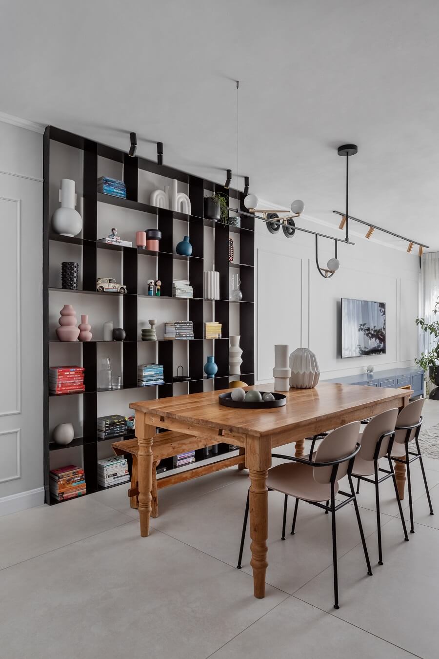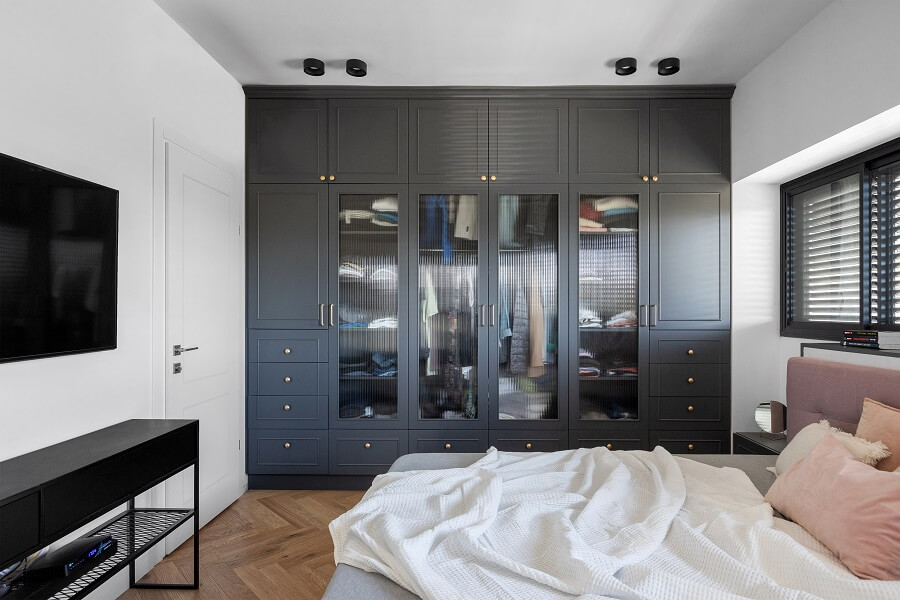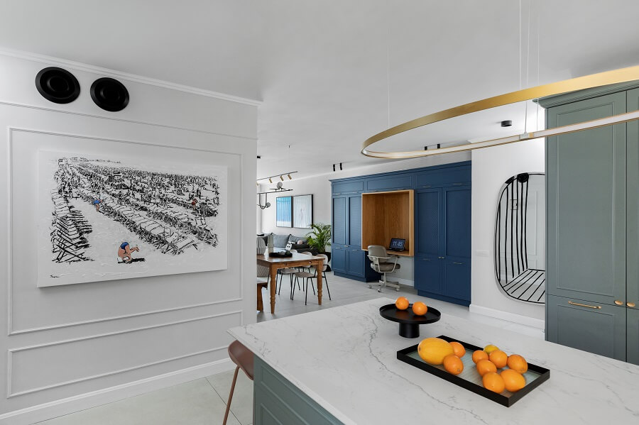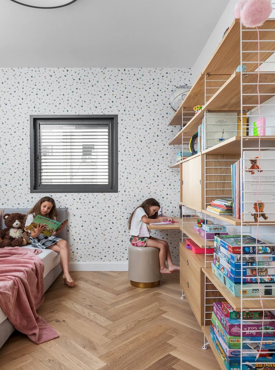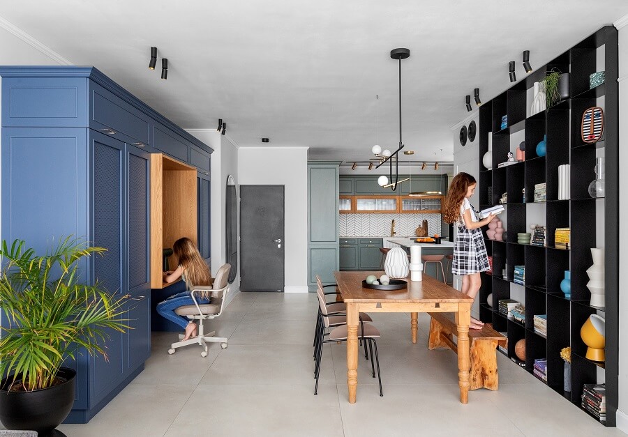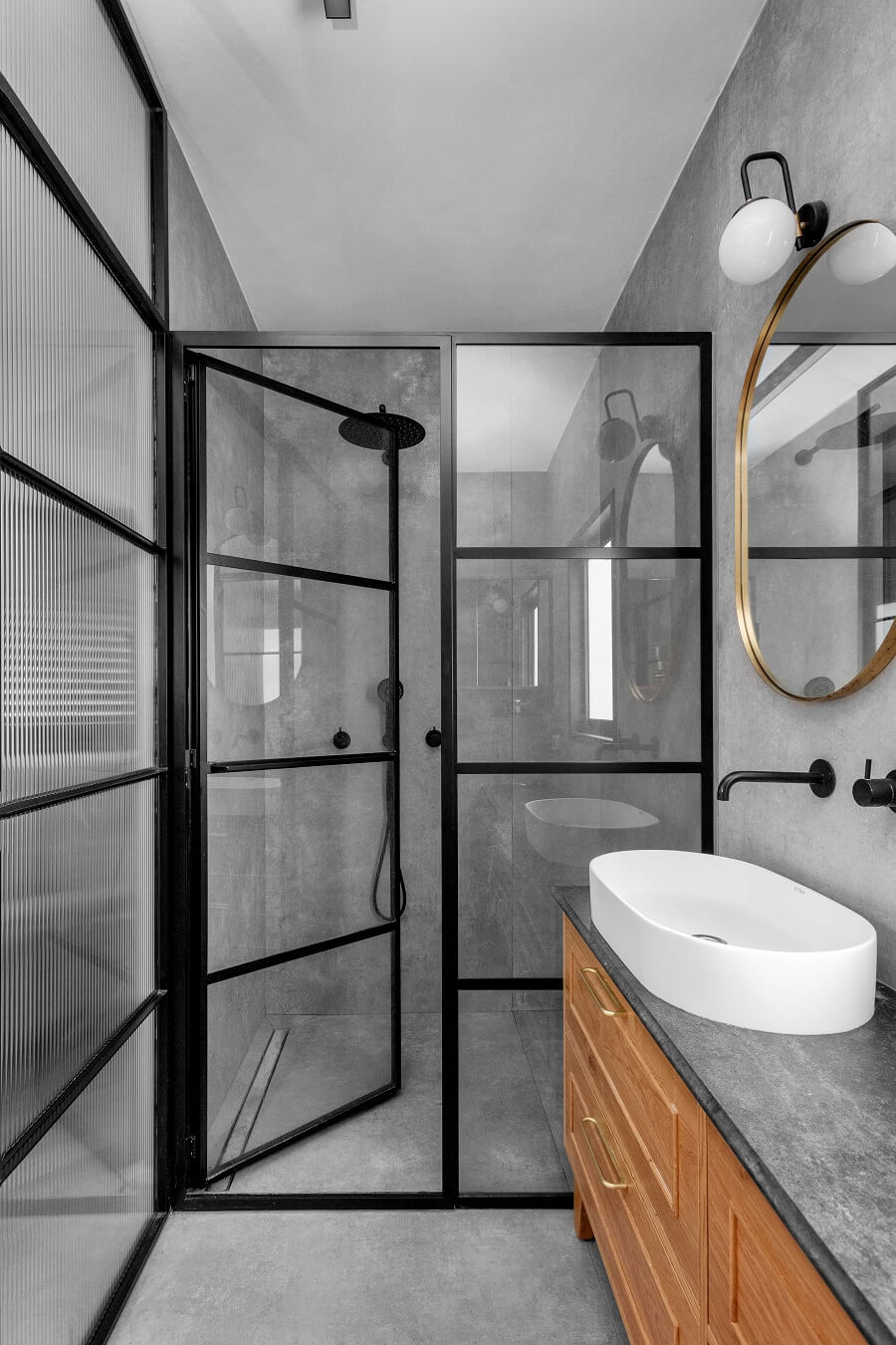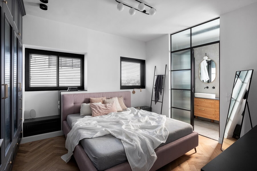 הדירה עברה שיפוץ מאסיבי , חלוקת חלל חדשה, החלפת תשתיות חשמל ואינסטלציה. תכנון נגרות בהתאמה אישית לכל החללים בבית.