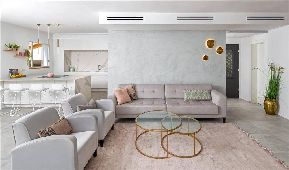 אחרי שהבינה שהתכנון עומד בציפיות המשכנו לרקום בחוטים של זהב ופודרה את יתר חללי הבית.