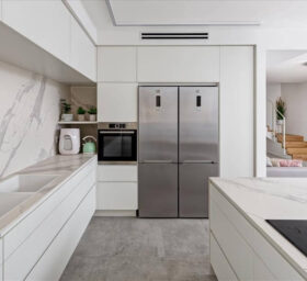 מטבח – מטבח מודרני ומראה נקי, ומלא מקומות איחסון.