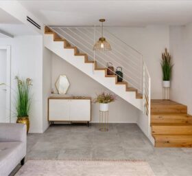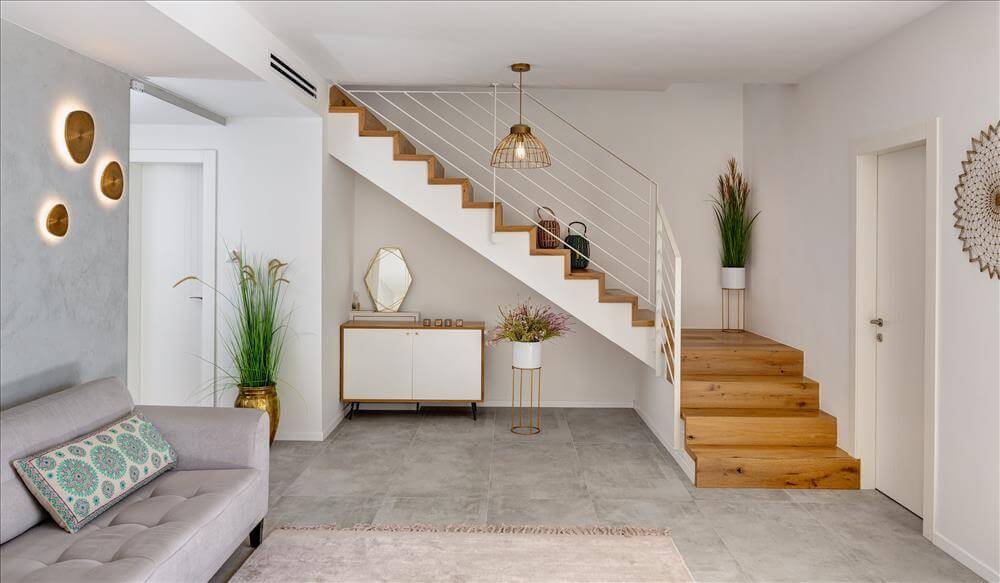 מדרגות – חיפוי בעץ תלת שכבתי והמעקה נקי ואלגנטי.