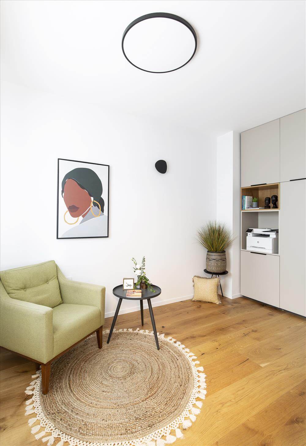 מחורץ בשחור. סוויטת השינה והמשרד – גוונים בהירים, טבעיים ורכים.