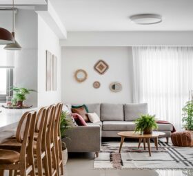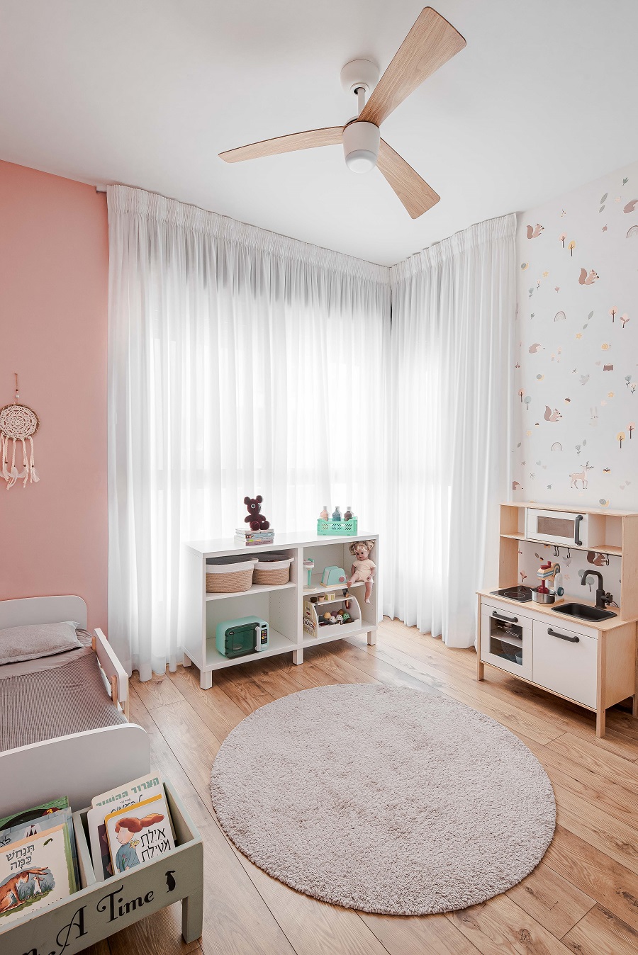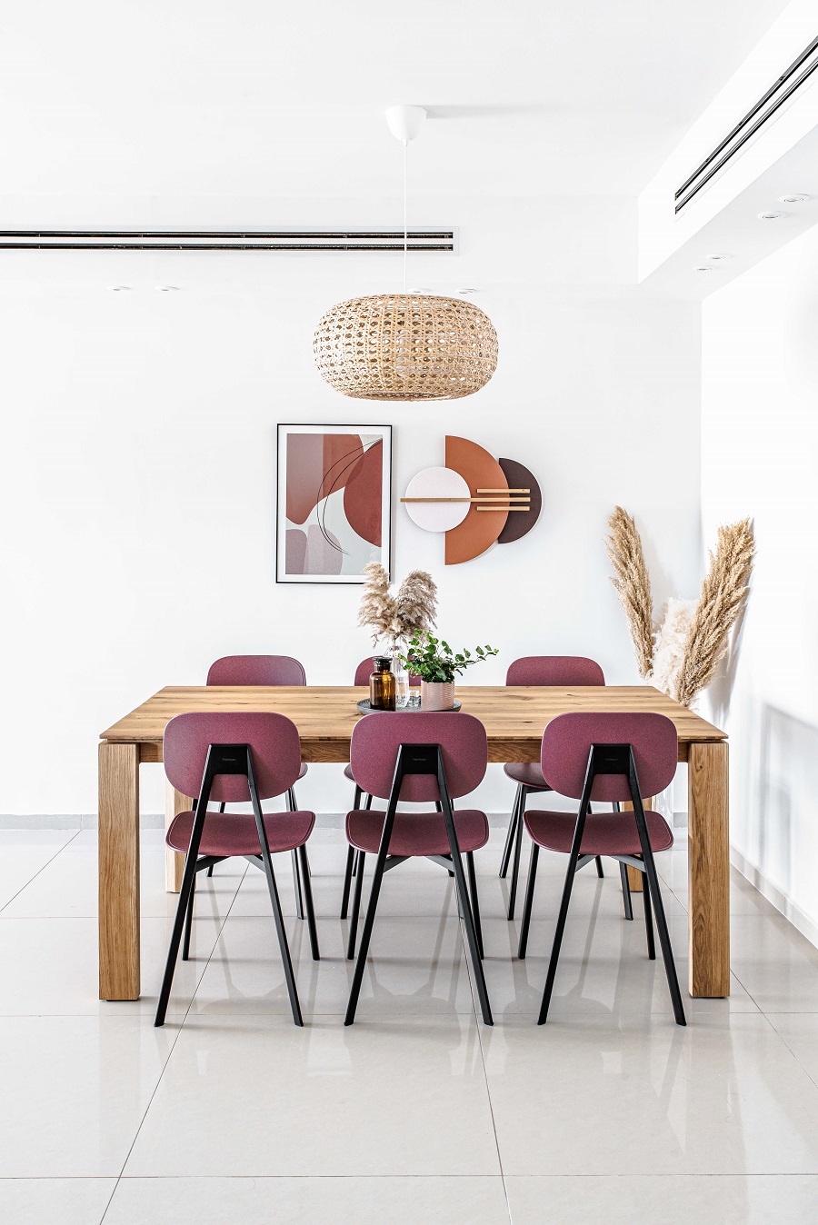 יחד עם הגוונים הנועזים שילבנו גוונים של לבן, קש ועץ שאיזנו והוסיפו את השקט והרוגע