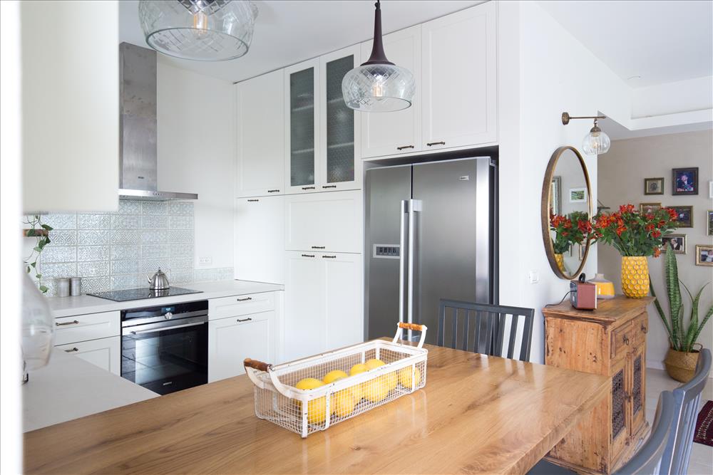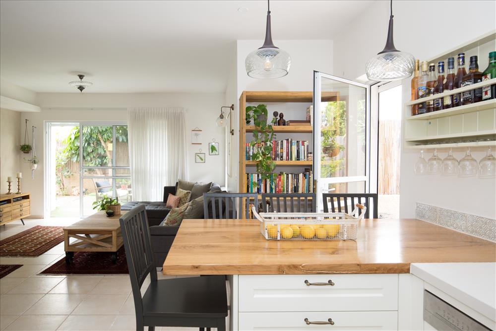 המטבח הוחלף, תוכנן והותאם לצרכי המשפחה, החלונות הוחלפו לפרופיל בלגי, שמשנה את האוירה, מוסיף נגיעה כפרית ומכניס את הירוק של הגן הביתה.