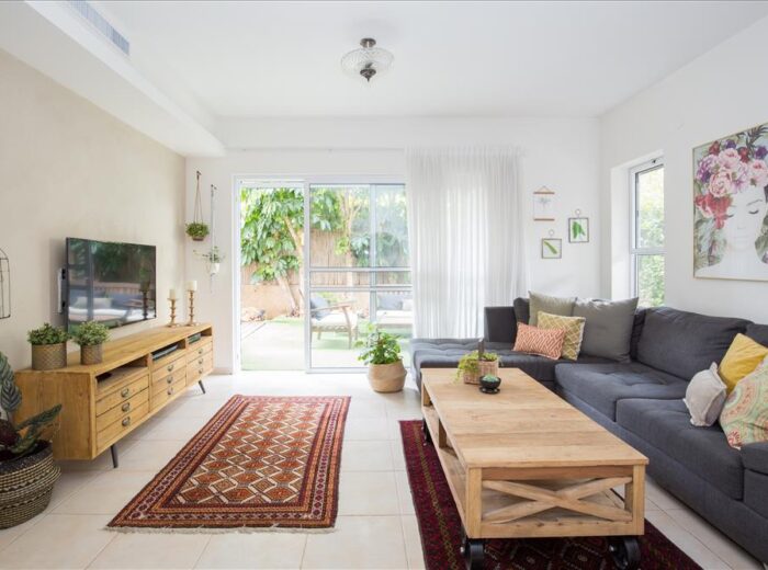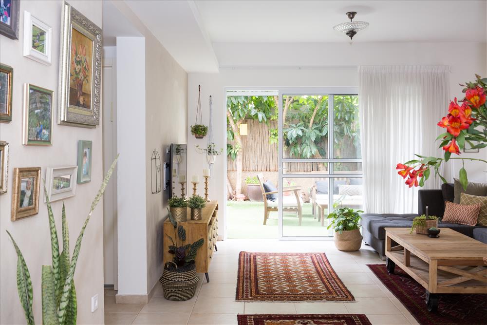 אותגרתי – להכניס הכל לדירת גן של 3 חדרים וליצור בית חם, כפרי והרמוני.