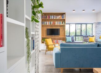 ולבסוף טקסטיל, תמונות, ריהוט מיוחד, צמחים ותאורה להשלמת המראה.